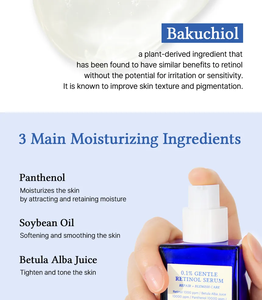 - Features Bakuchiol that helps improve skin texture and reduce pigmentation.