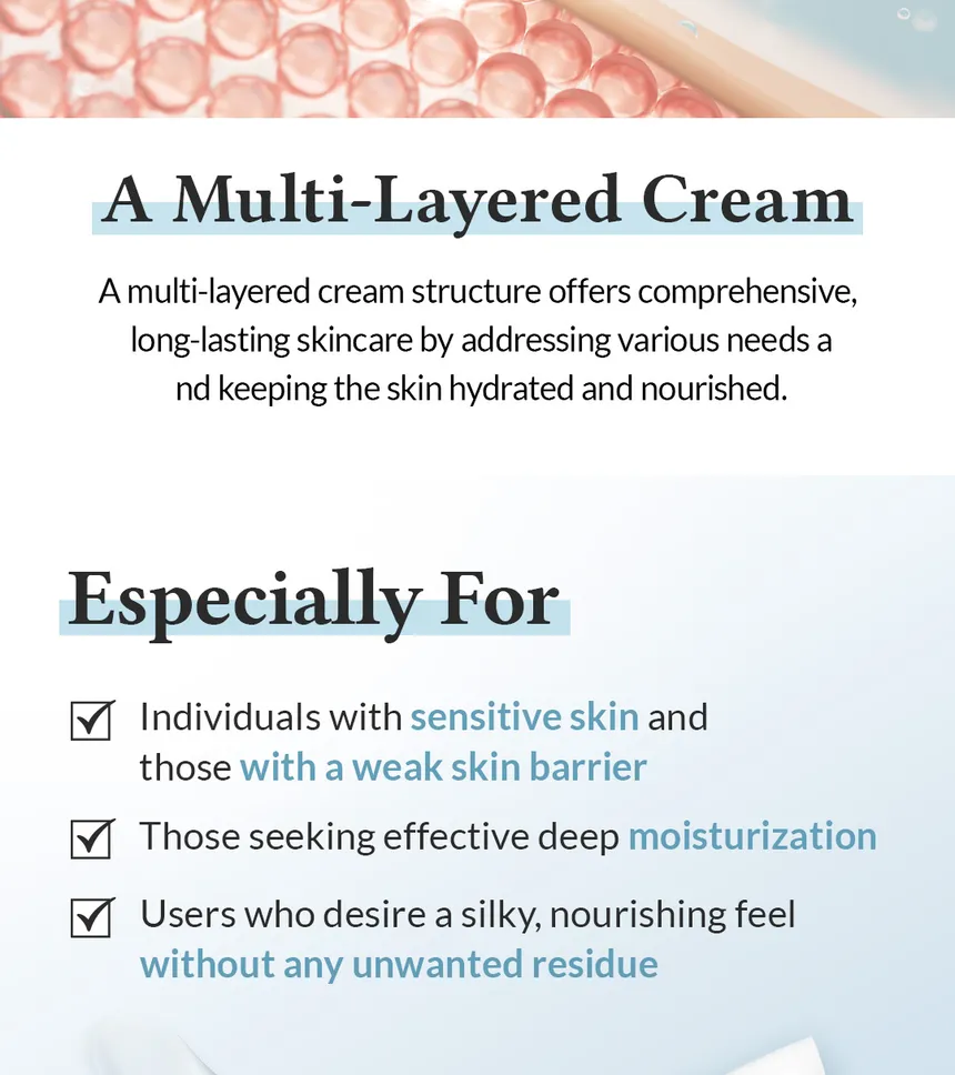 Water, Glycerin, Dipropylene Glycol, Cetearyl Alcohol, Caprylic/Capric Triglyceride, Methyl Trimethicone, Hydrogenated Polydecene, 1,2-Hexanediol, Phenyl Trimethicone, Vegetable Oil, Dimethicone/Vinyl Dimethicone Crosspolymer, Glyceryl Stearate Se, Cetearyl Olivate, Palmitic Acid, Sorbitan Olivate, C12-16 Alcohols, Behenyl Alcohol, Stearic Acid, Hydrogenated Lecithin, Microcrystalline Cellulose, Cetearyl Glucoside, Laminaria Japonica Extract, Eclipta Prostrata Leaf Extract, Butylene Glycol, Ceramide NP, Ethylhexylglycerin, C12-15 Alkyl Benzoate, Squalane, Ammonium Acryloyldimethyltaurate/Vp Copolymer, Panthenol, Polyglyceryl-10 Myristate, Glyceryl Polymethacrylate, Cellulose Gum, Pelargonium Graveolens Flower Oil, Cholesterol, Fructooligosaccharides, Coptis Japonica Root Extract, Disodium EDTA, Beta-Glucan, Sodium Hyaluronate, Artemisia Princeps Leaf Extract, Persea Gratissima (Avocado) Fruit Extract, Brassica Oleracea Acephala Leaf Extract, Carnosine, Hydrolyzed Hyaluronic Acid, Methylpropanediol, Maltodextrin, Hydrolyzed Gardenia Florida Extract, Guaiazulene, Arginine, Carbomer, Phenoxyethanol, Tocopherol, Camellia Sinensis Seed Oil, Argania Spinosa Kernel Oil, Beta Vulgaris (Beet) Root Extract, Chamaecyparis Obtusa Leaf Extract, Dimethylsilanol Hyaluronate, Hydrolyzed Sodium Hyaluronate, Potassium Hyaluronate, Hyaluronic Acid, Paeonia Albiflora Flower Extract, Sodium Hyaluronate Crosspolymer, Hydroxypropyltrimonium Hyaluronate, Sodium Hyaluronate Dimethylsilanol, Sodium Acetylated Hyaluronate, Oligopeptide-1