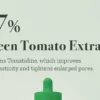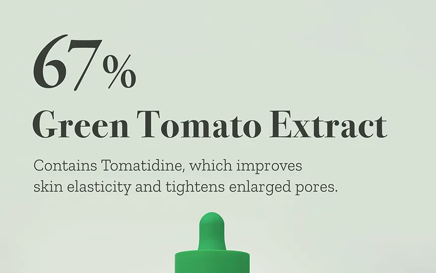 • A vegan serum contains 67% Green Tomato Extract which is rich in Tomatidine and Vitamin C that helps reduce pore areas and volume.