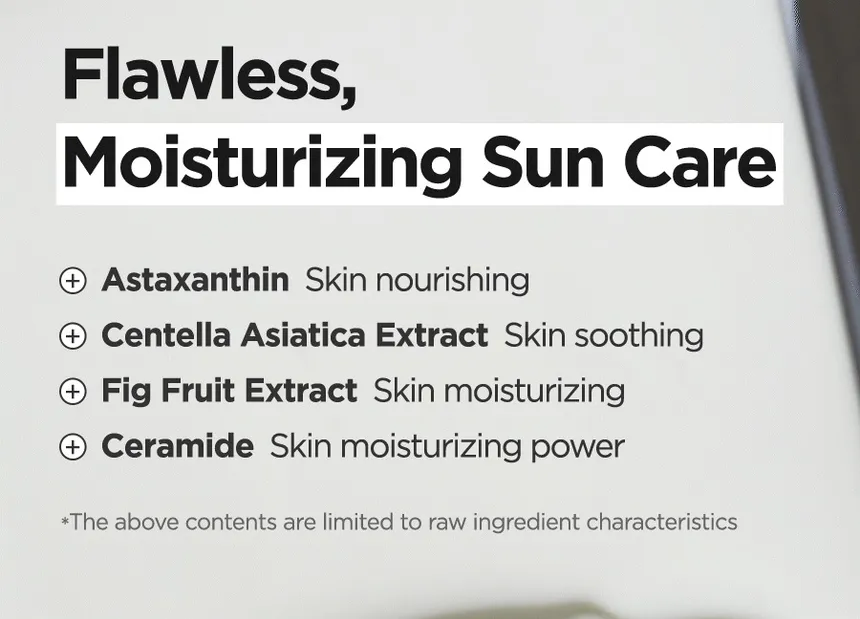 Water, Butylene Glycol, Ethylhexyl Salicylate, Homosalate, Dibutyl Adipate, Niacinamide, Bis-Ethylhexyloxyphenol Methoxyphenyl Triazine, Cyclopentasiloxane, Methylene Bis-Benzotriazolyl Tetramethylbutylphenol, Polysilicone-15, Diethylamino Hydroxybenzoyl Hexyl Benzoate, 1,2-Hexanediol, Pentylene Glycol, Centella Asiatica Extract, Portulaca Oleracea Extract, Houttuynia Cordata Extract, Olea Europaea (Olive) Fruit Oil, Ficus Carica (Fig) Fruit Extract, Pinus Pinaster Bark Extract, Ceteth-10, Tromethamine, Decyl Glucoside, Acrylates/C10-30 Alkyl Acrylate Crosspolymer, Carbomer, Cetyl PEG/PPG-10/1 Dimethicone, Propanediol, Ethylhexylglycerin, Adenosine, Propylene Glycol, Xanthan Gum, Sodium Hyaluronate, Glycerin, Tocopherol, Hydrogenated Lecithin, Ceramide NP, Astaxanthin, Sodium Acetylated Hyaluronate, Sodium Hyaluronate Crosspolymer, Ascorbyl Propyl Hyaluronate, Hydroxypropyltrimonium Hyaluronate, Hydrolyzed Sodium Hyaluronate, Hydrolyzed Hyaluronic Acid, Hyaluronic Acid