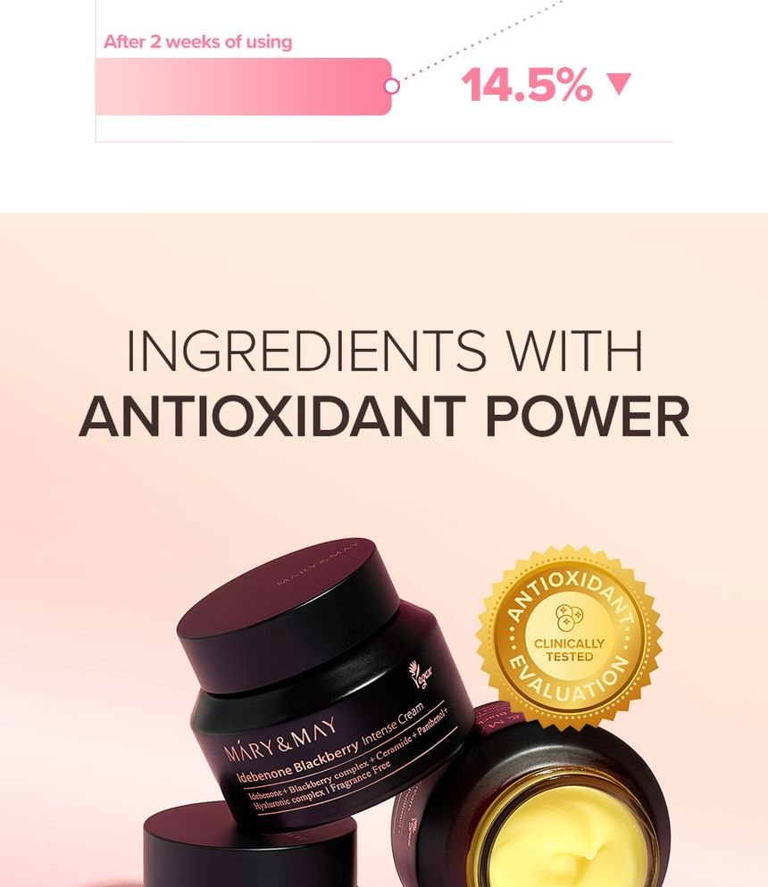 - A multi-functional cream formulated with 63% Blackberry Complex and Idebenone (500ppm) that have powerful antioxidant property, restoring youthful looking skin.