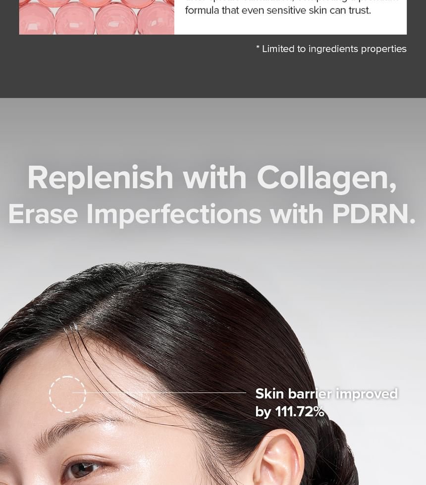 - Formulated with CICA PDRN to target damaged cells, promoting skin recovery and regeneration while fortifying the collagen barrier and soothing the skin.
