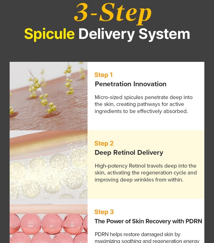 - Features a high concentration of micro-sized Nano Liposome Retinol, which reduces skin irritation while enhancing stability and absorption.