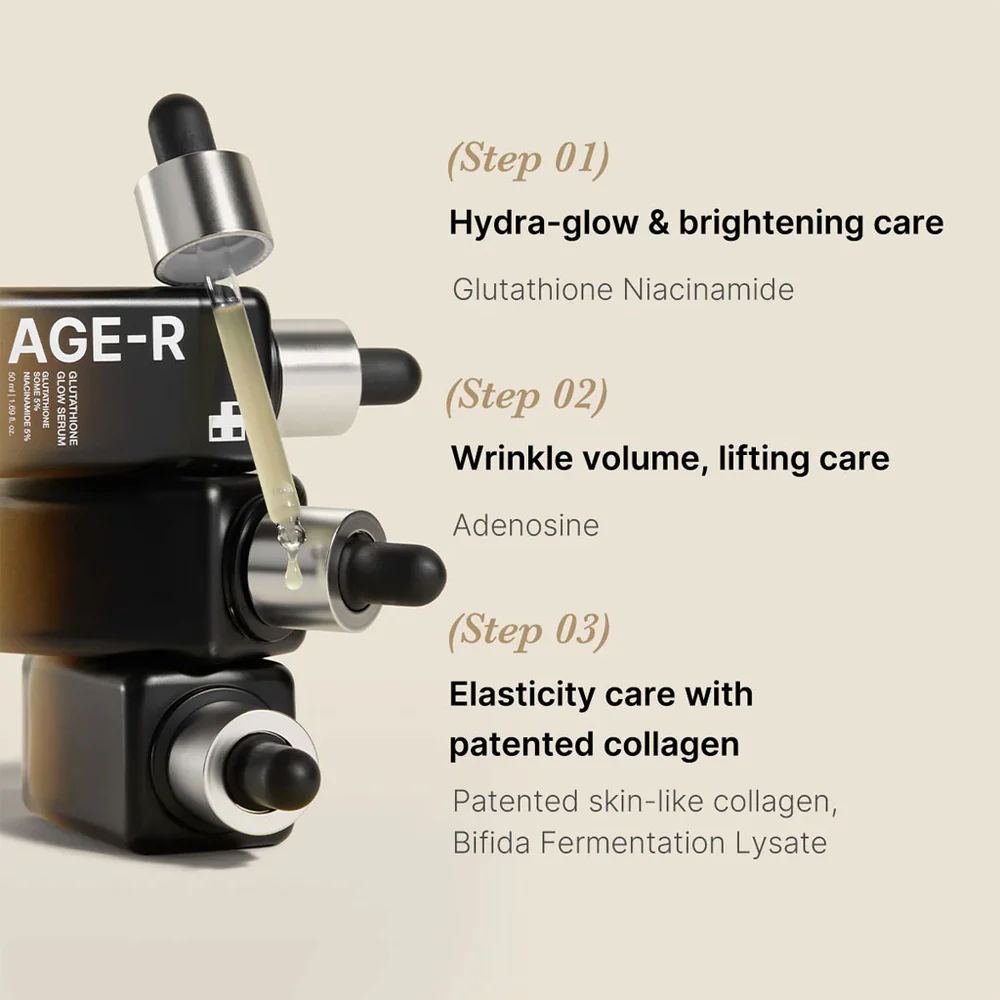 - Makes skin glow with Active Glow-zom Technology containing Glutathione (50,000ppm) Niacinamide, Adenosine, Patented skin-like collagen, and Bifida Fermentation Lysate.