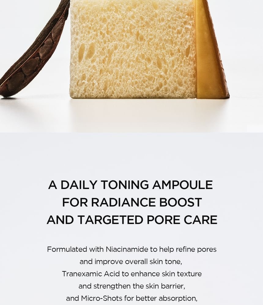 - Brightening ampoule with micro spicules to improve uneven skin tone, reduce pores and boost skin glow.