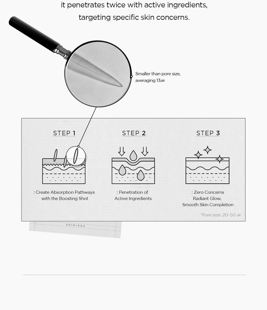 - Spicules infused with Madagascar Centella and Panthenol to nourish the skin and enhance absorption of active ingredients.