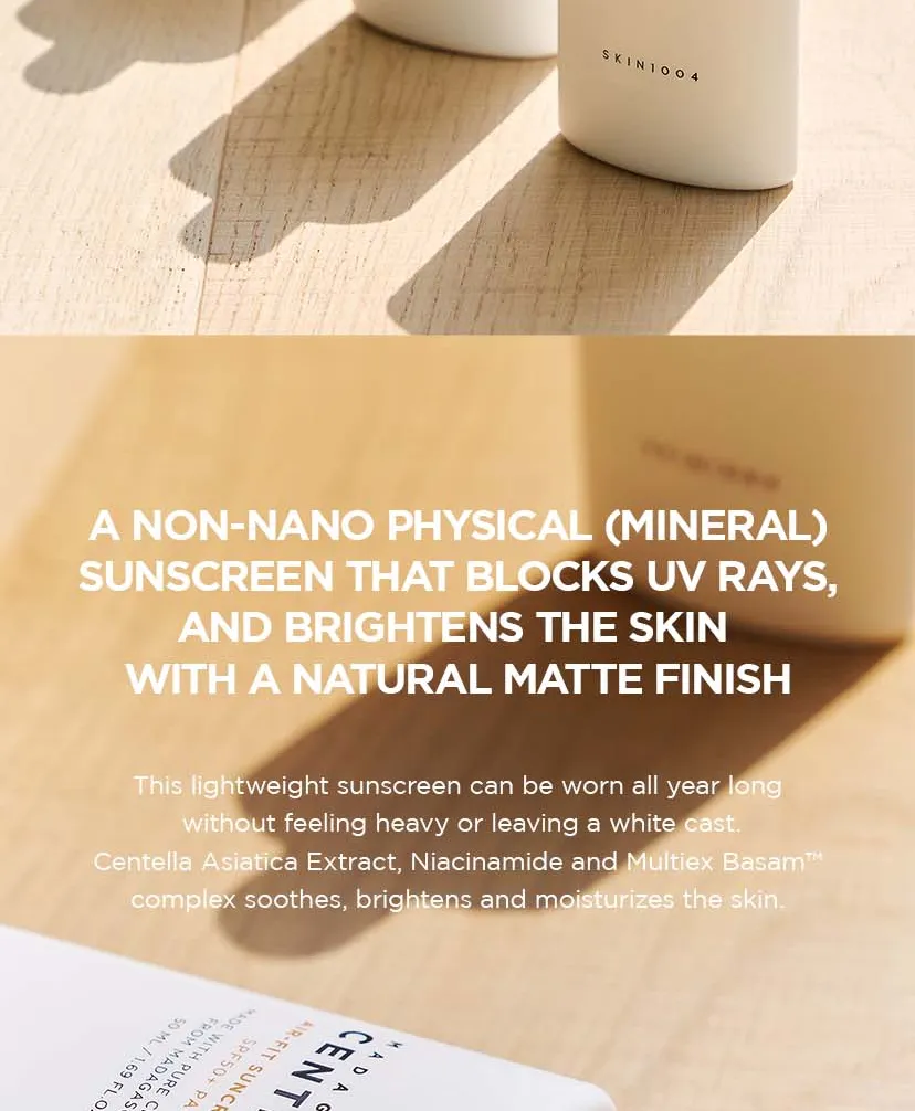 Centella Asiatica (Gotu Kola) Extract(35.8%), Cyclopentasiloxane, Zinc Oxide, Butyloctyl Salicylate, Titanium Oxide, Propanediol, Benzotriazolyl Dodecyl p-Cresol, Coptis Chinensis Root Extract, PEG-10 Dimethicone, Niacinamide, Disteardimonium Hectorite, Butylene Glycol, Magnesium Sulfate, 1,2-Hexanediol, Caprylic/Capric Glycerides, Dimethicone, VP/Hexadecene Copolymer, Polymethylsilsesquioxane, Aluminum Hydroxide, Stearic Acid, Sorbitan Sesquioleate, Triethoxycaprylylsilane, Dimethicone Crosspolymer, Dimethicone/Vinyl Dimethicone Crosspolymer, Dextrin, Theobroma Cacao (Cocoa) Extract, Pelargonium Graveolens Flower Oil, Water, Citrus Aurantium Bergamia (Bergamot) Fruit Oil, Betaine, Scutellaria Baicalensis Root Extract, Polygonum Cuspidatum Root Extract, Glycyrrhiza Glabra (Licorice) Root Extract, Camellia Sinensis Leaf Extract, Sodium Hyaluronate, Rosmarinus Officinalis (Rosemary) Leaf Extract, Chamomilla Recutita (Matricaria) Flower Extract, Rosa Damascena Flower Oil, Pentylene Glycol, Madecassoside, Citronellol, Geraniol, Linalool