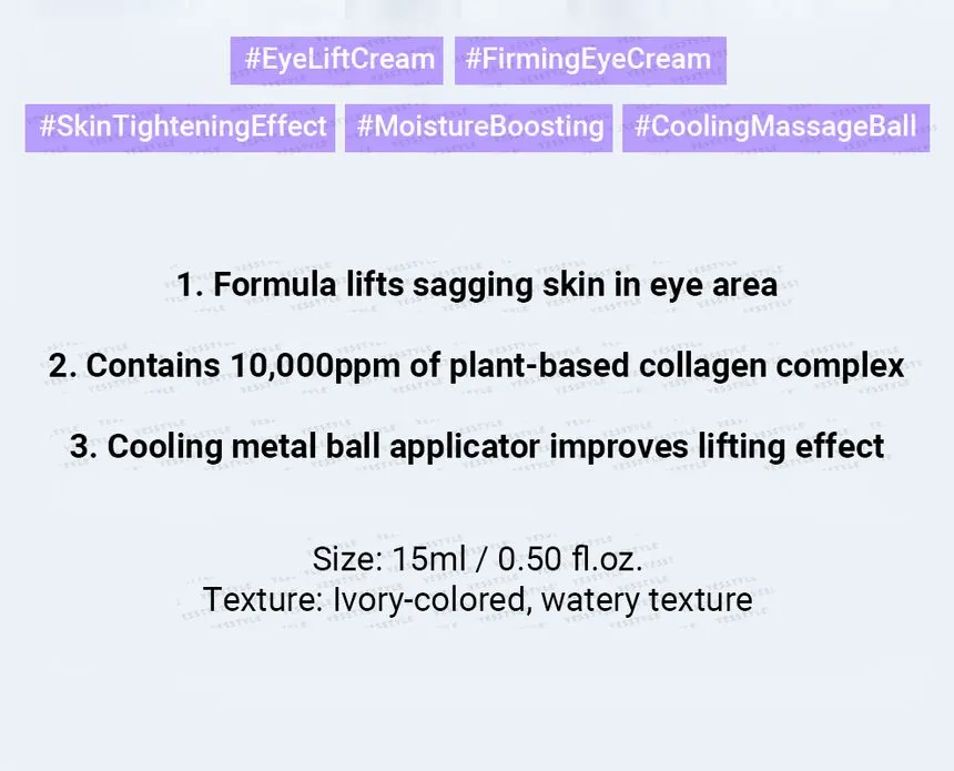 • Eye cream containing 10,000ppm of plant-derived collagen complex provides nutrients and a lifting effect to the eye area.
