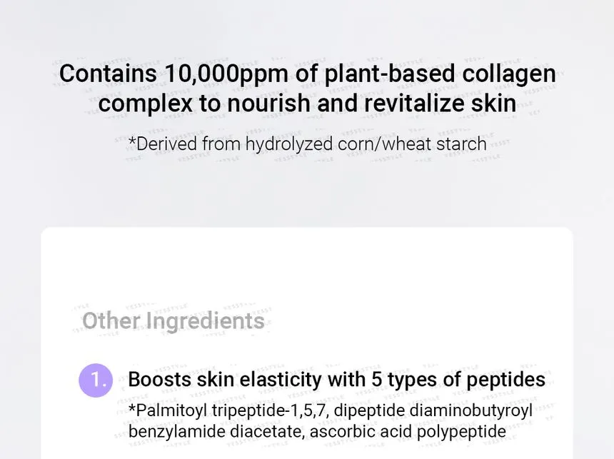 • Infused with 5 types of peptides, niacinamide and adenosine to boost skin elasticity, brighten skin and reduce wrinkles.